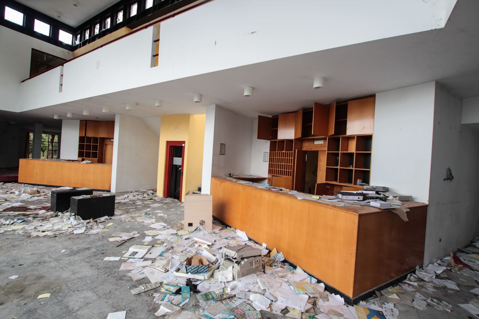 como si pasara un huracán. Es por eso que ni oculto los carteles con el nombre del hotel, su estado ya es lamentable en esta exploración de comienzos de 2017, ahora es un verdadero campo de batalla. Para contrastar aun más el estado inicial y final de este hotel, van imágenes mezcladas de ambos estados (imágenes extraídas aun de webs de reserva de hoteles. Después de seis años de cierre y desastres, alguno/a llamará para reservar habitación).